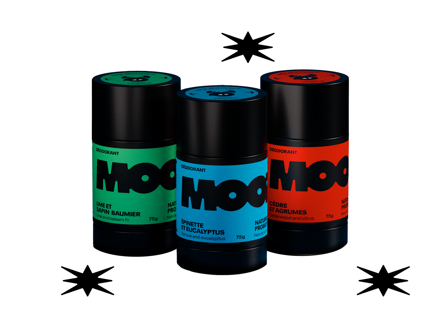 Nous sommes 2 Canadiens qui avons passé 3 ans à développer notre formulation avec une seule mission en tête : restaurer la confiance des consommateurs avec le seul déodorant prouvé pour être efficace naturellement. Il y a les déos chimiques, les déos naturels... et il y a MOOZ.